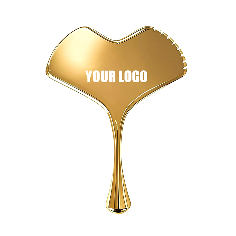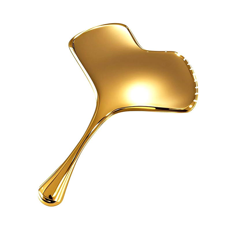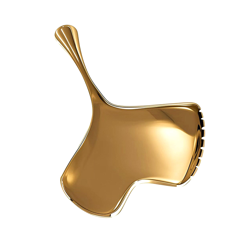 هذه أداة تدليك للعناية بالبشرة على شكل ورقة غواشا من الفولاذ.